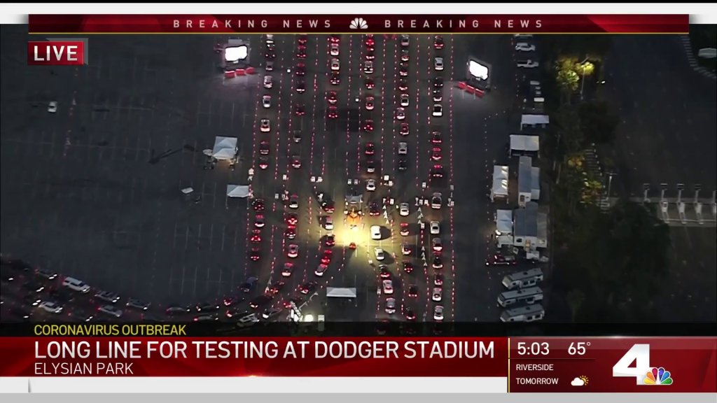 Line For Covid 19 Testing At Dodgers Stadium Stretches On And On Nbc Los Angeles